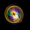 With a pink light writer and the flashlight blinking, I spin the phsyio in an oval shape until the rotation slows down the cover the lens. Switch to the blue light writer and spin another oval phsyio in the opposite direction and then cover again. Last spin is done with the white light writer in a big circle. When the white light is complete I cover the lens and shut the flashlight off.